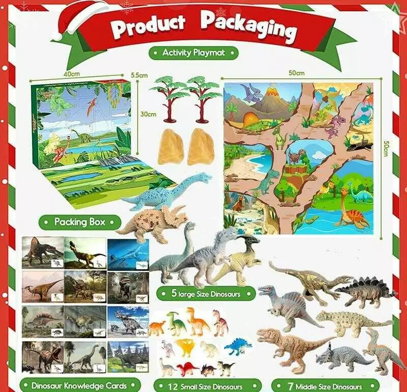 Набір динозаврів WS 26 (20) адвент-календар, фігурки динозаврів, 24 комірки, ігрове поле, в коробці