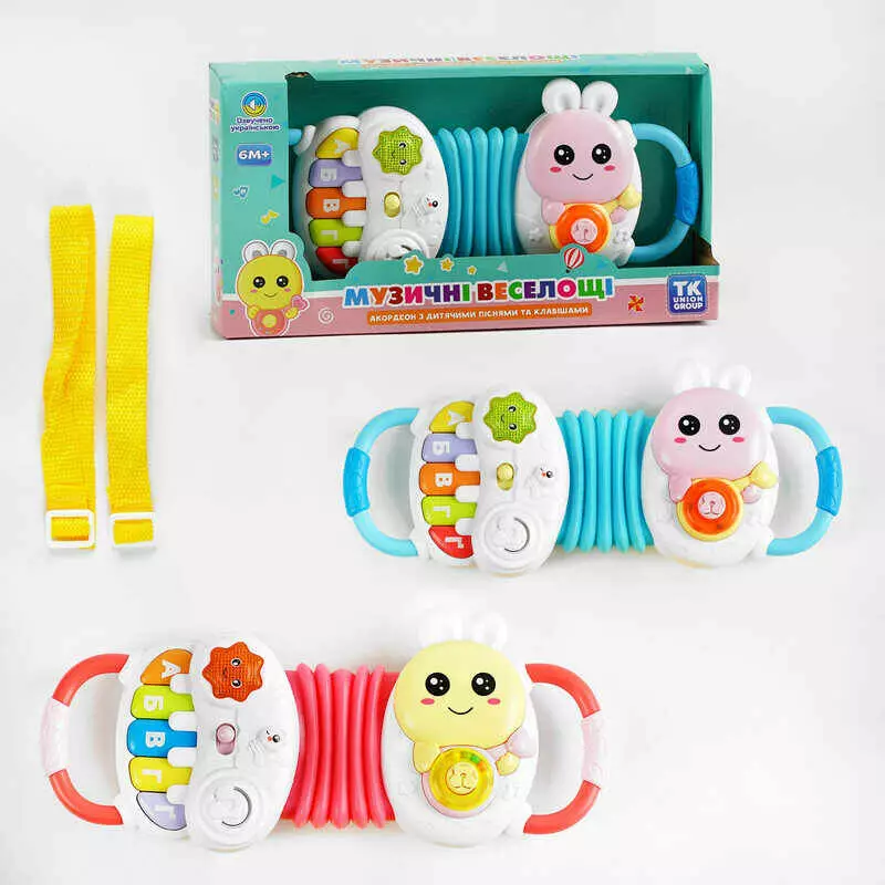 Акордеон “Музичні веселощі” TK - 60228 (60/2) "TK Group", 2 кольори, ОЗВУЧУВАННЯ УКРАЇНСЬКОЮ МОВОЮ, пісні, літери, мелодії, підсвічування, в коробці