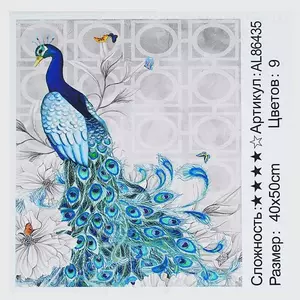 Алмазна мозаїка AL 86435 ЗІ СТРАЗАМИ РІЗНОЇ ФОРМИ (30) "TK Group", 40х50см, “Чарівний павич”, в коробці