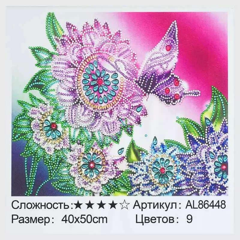 Алмазна мозаїка AL 86448 ЗІ СТРАЗАМИ РІЗНОЇ ФОРМИ (30) "TK Group", 40х50см, “Метелик”, в коробці