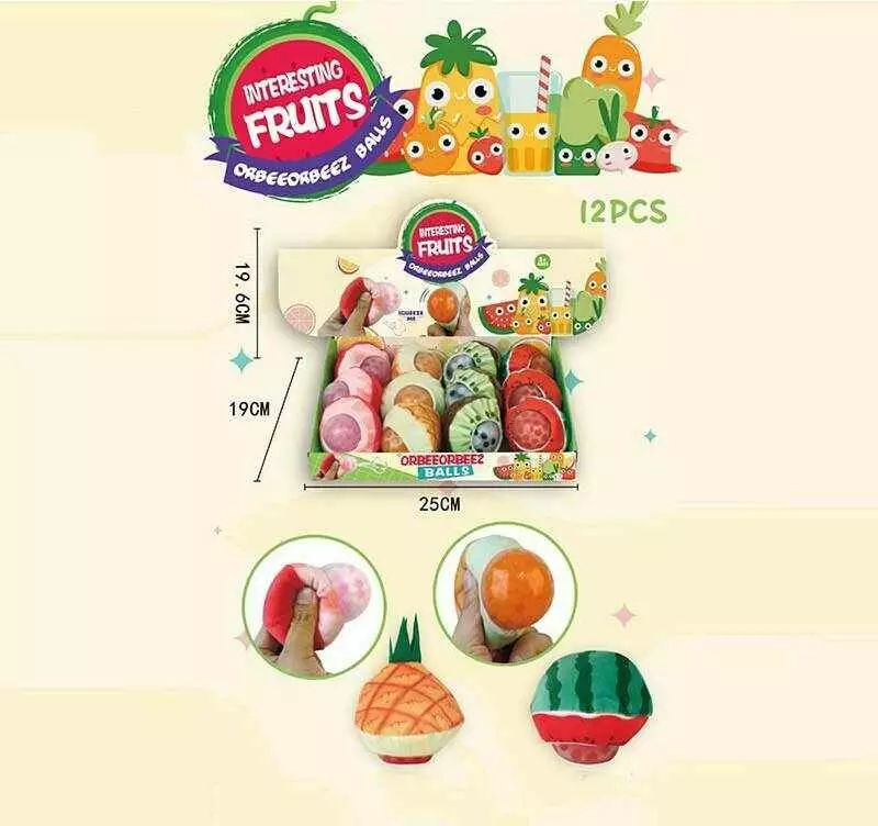 Антистрес YC 894 (12) ЦІНА ЗА 12 ШТУК В БЛОЦІ, фрукти і ягоди, текстиль, м`які орбізи, розмір - 8х8х5.5 см, у коробці