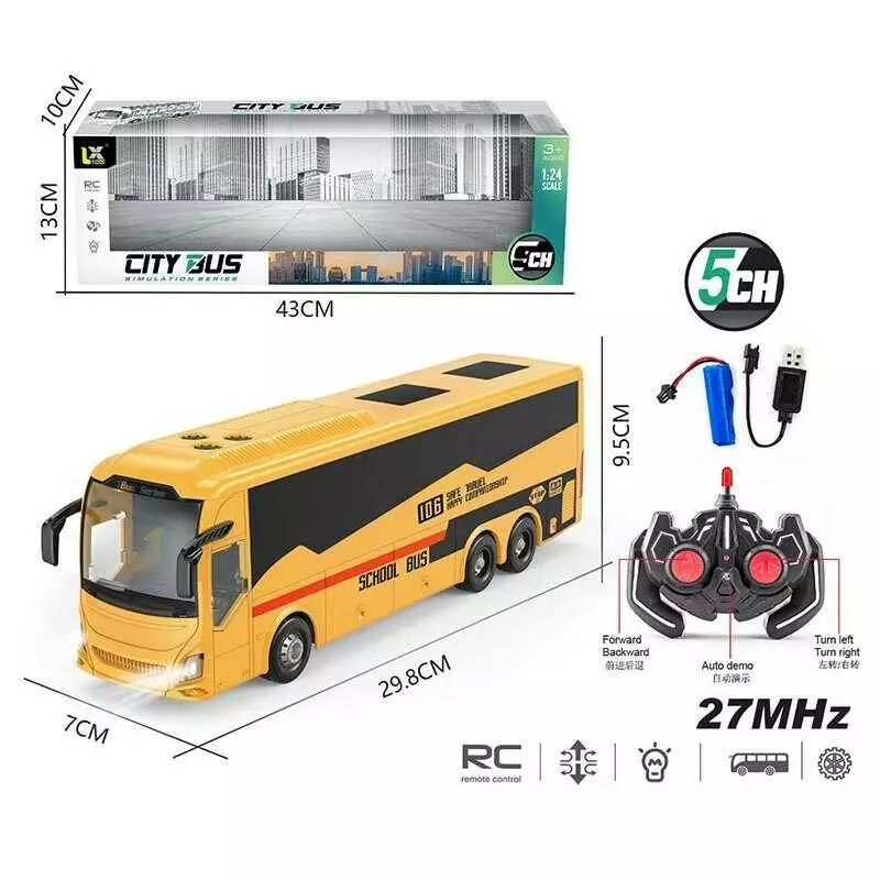 Автобус на радіокеруванні 197-3 (48) масштаб: 1:24, акумулятор: 3.7 V, пульт: 27 MHz, USB-кабель, підсвічування, прогумовані шини, в коробці