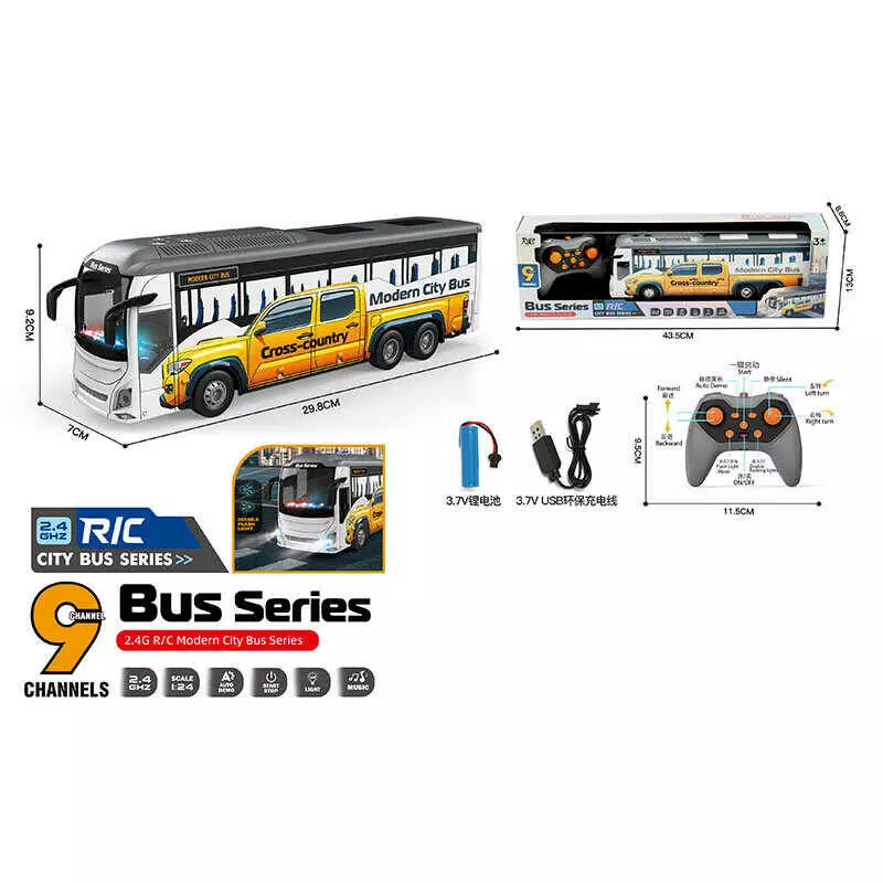 Автобус на радіокеруванні 295-3 (36) акумулятор 3.7 V, пульт керування 2.4 GHz, масштаб 1:24, підсвічування, мелодії, режим демонстрації, в коробці