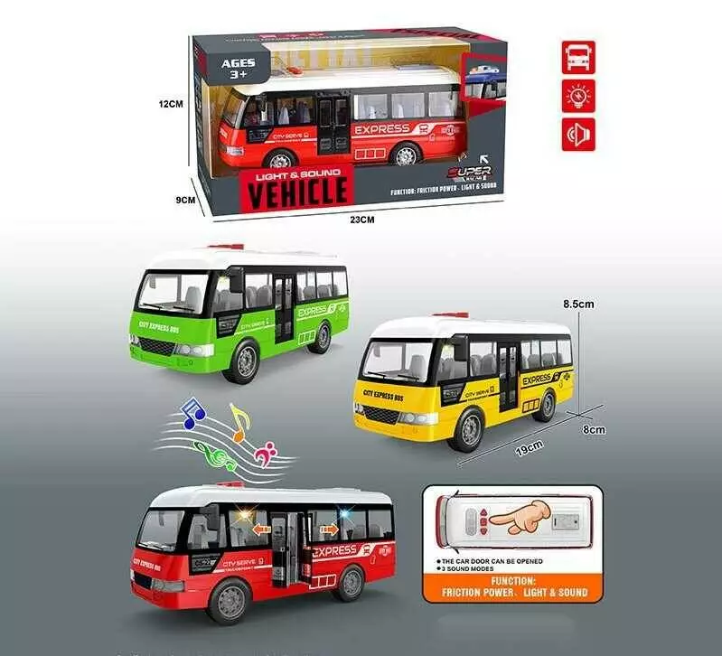 Автобус YM 9907 B (84/2) розмір: 19х8х8.5 см, підсвічування, звуки та мелодії, інерція, відчиняються двері, гумові колеса, в коробці