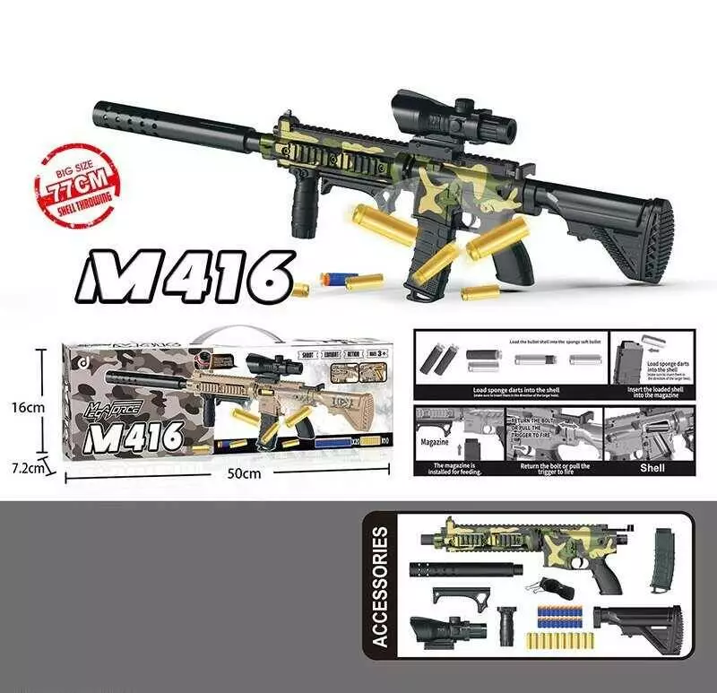 Автомат 323 E (42) механічний принцип роботи, 20 м’яких патронів, 10 гільз, приціл, в коробці