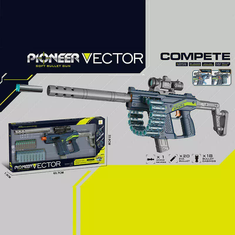 Автомат 836 A (12) довжина - 68 см, механічний принцип роботи, 20 м’яких патронів, оптичний приціл -1х-6х, 18 гільз, в коробці