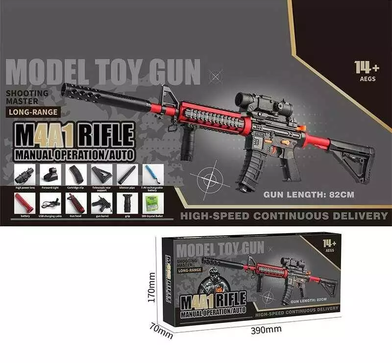 Автомат 896 A-3 (36) довжина 82 см, автоматичний принцип роботи, приціл, акумулятор 7.4V, USB кабель, орбізи, патронний магазин, в коробці