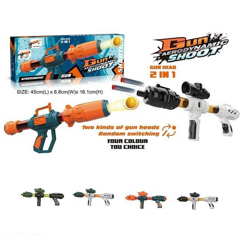 Автомат 998 (40) 2в1, 12 м`ячиків, 20 м`яких патронів, помповий механізм, в коробці, МІКС ВИДІВ