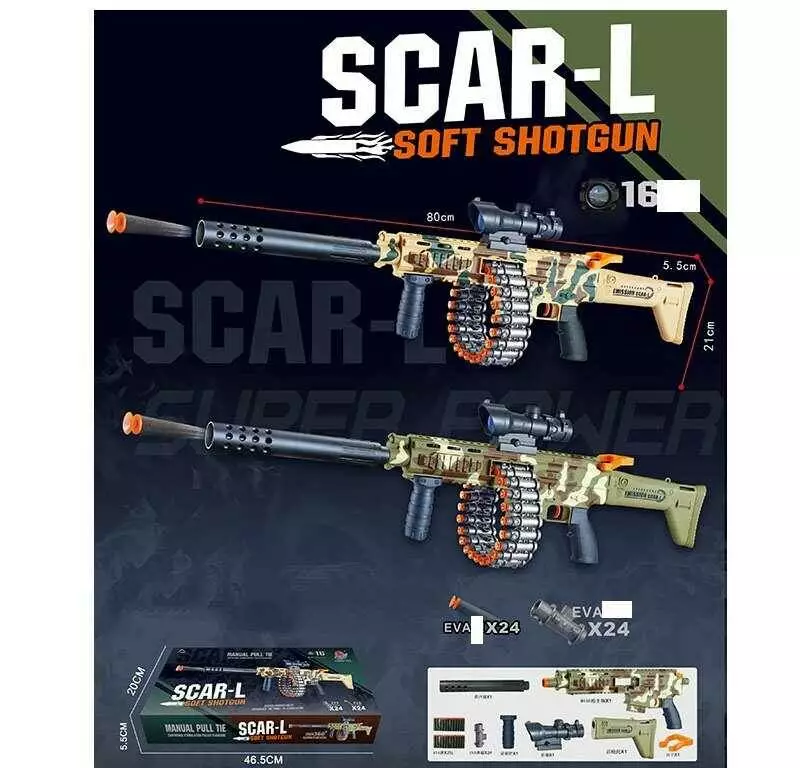 Автомат JH 010 B (48) 2 кольори, оптичний приціл, глушник, м’які патрони з присоскою, кулеметна стрічка, в коробці
