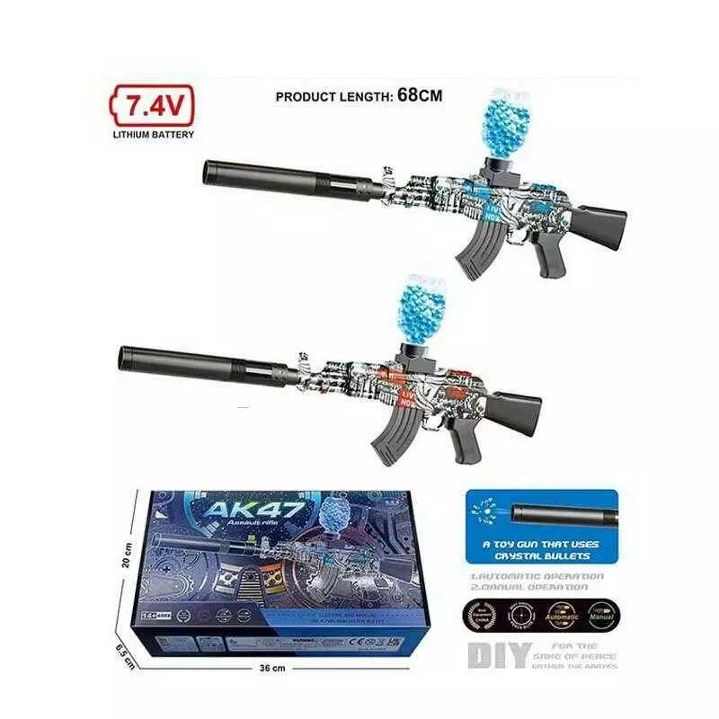 Автомат LYM 016 B 2-3 (48/2) 2 кольори, акумулятор 7,4V, автоматичний та механічний принципи роботи, стріляє орбізами, магазин та глушник, в коробці