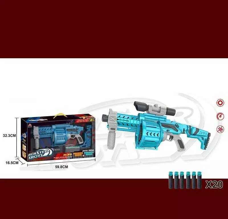Автомат SB 582 B (8) 20 м`яких набоїв на присосках, знімний приклад, картонна мішень, в коробці