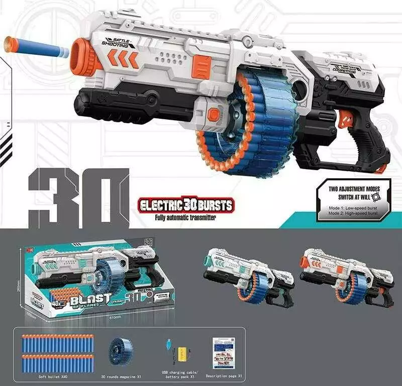 Автомат XH 9963-1 (12) 2 кольори, стріляє м’якими патронами, автоматичний принцип роботи, 40 патронів, ак. 4.8V, USB-кабель, в коробці