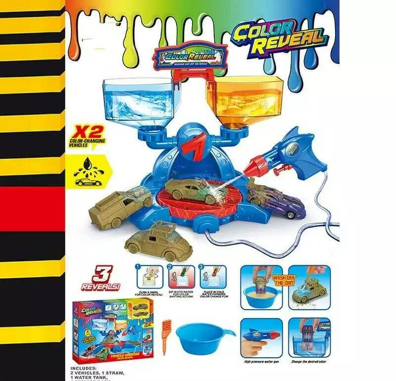 Автомийка SK 772 S (36) 2 металопластикові машинки, змінюють колір, рухливі елементи, водяний пістолет, піпетка для водички, в коробці