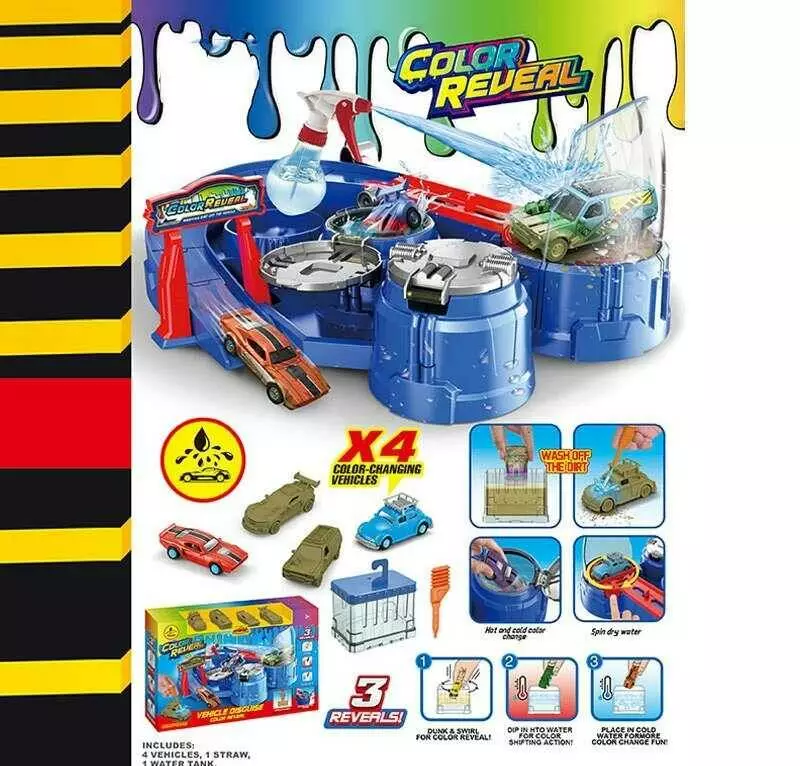 Автомийка SK 773 S (20) 4 металопластикові машинки, змінюють колір, рухливі елементи, пульверизатор, піпетка для водички, в коробці