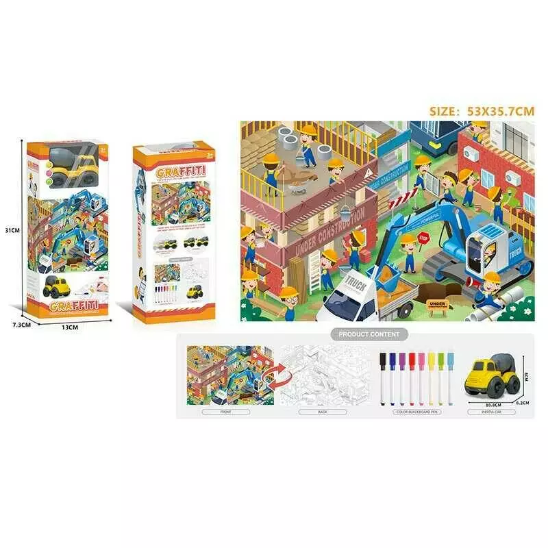 Багаторазова розмальовка 7077-124 (72/2) 8 маркерів, машинка з інерцією, в коробці