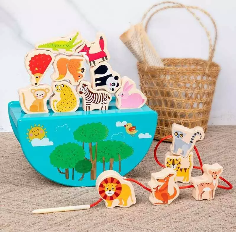 Балансир дерев’яний C 75592 (40) основа, маленькі фігурки тваринок, шнурівка, в коробці