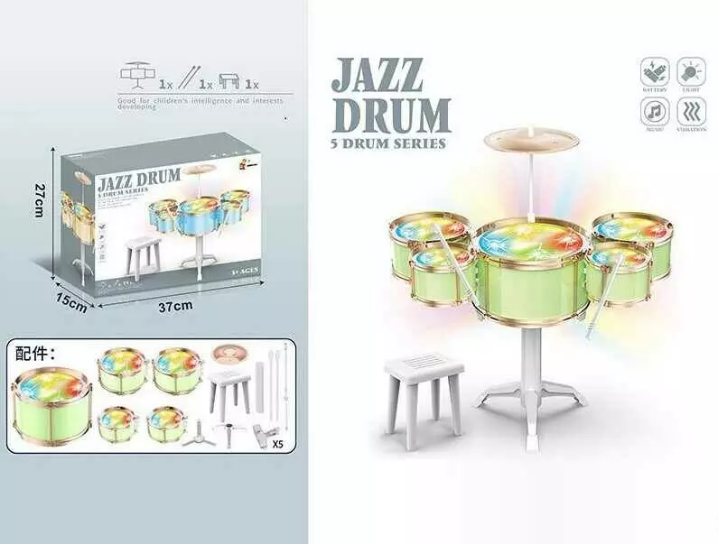 Барабанна установка DXBL 886-3 (20) підсвічування реагує на удар, барабані палички, стільчик, в коробці