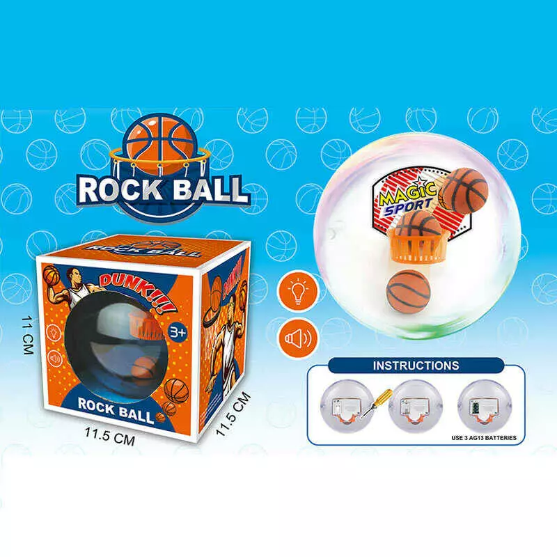 Баскетбол 111 (72/2) підсвічування, звук, прозора кулька діаметром 10 см, гумовий м’ячик, кошик на щиті, в коробці