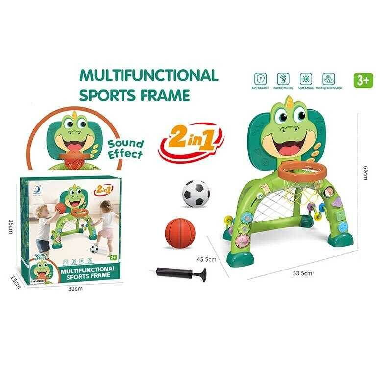 Баскетбол дитячий HL 311-13 (10/2) 53,5х45,5х62 см, звуки, пісні, насос, 2 м’ячі, сенсорний щит, підсвічування, сортер, рухомі шестерні, в коробці