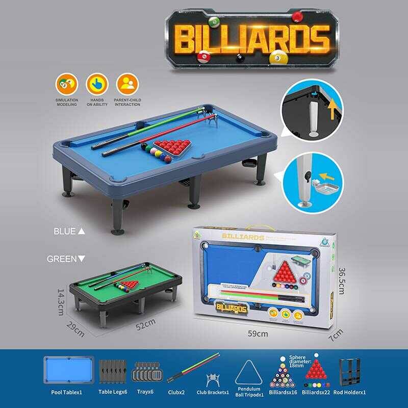 Більярд 788-102 Y (16) 2 кольори, кульки з номерами, кольорові кульки, 2 кийки, трикутник, в коробці