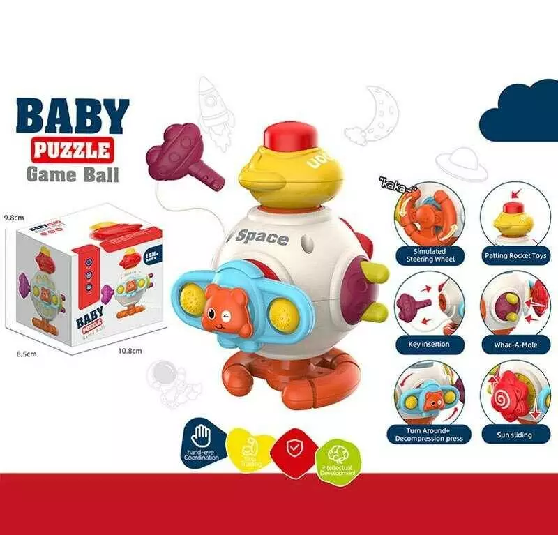 Бізіборд 666-2 (150) 6 забавок, тріскачка, пискавка, спінер, попіт, рухомі елементи, пальчикові ігри, в коробці