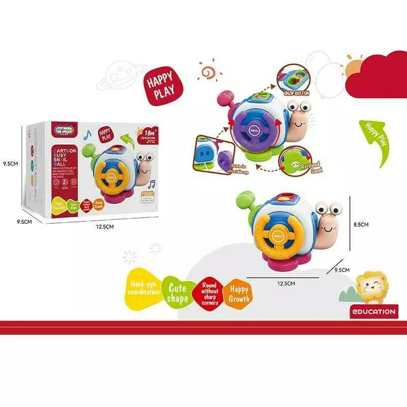 Бізіборд 99-21 (120) 2 види, “Равлик”, пальчикові ігри, 5 забавок, тріскачка, рухомі лементи, спінер, в коробці