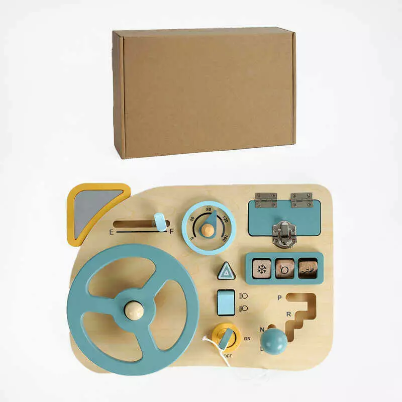 Бізіборд дерев`яний C 64852 (16) імітація керування машиною, 10 елементів, в коробці