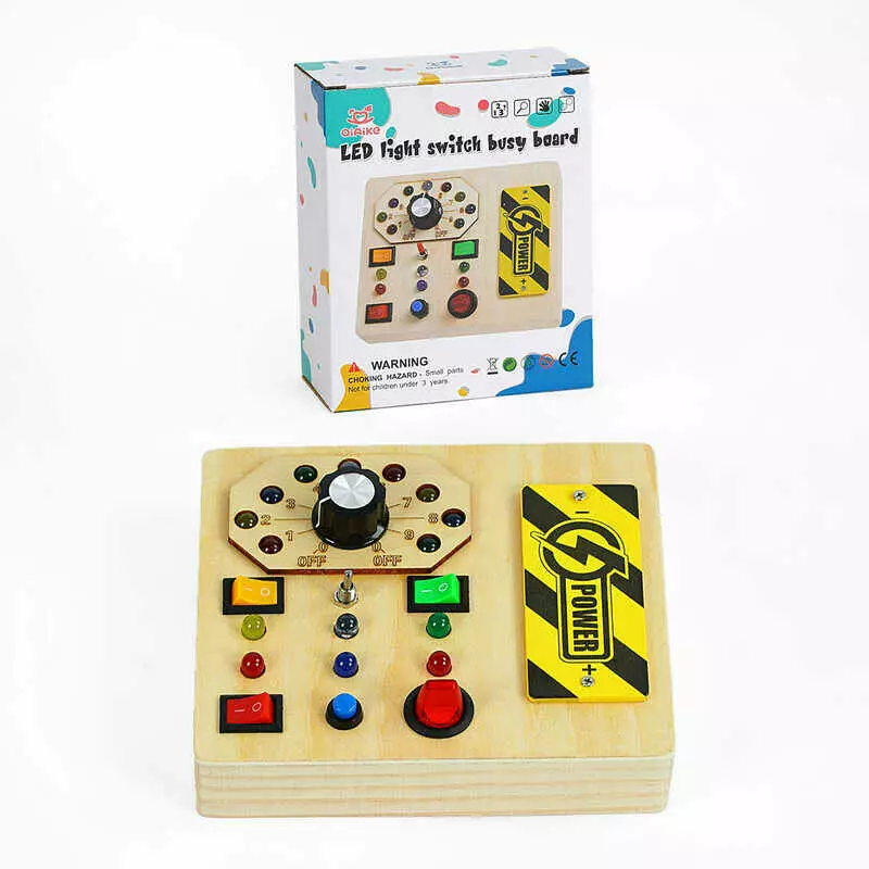 Бізіборд дерев`яний C 64862 (84) підсвічування, 7 перемикачів, викрутка, на батарейках, в коробці
