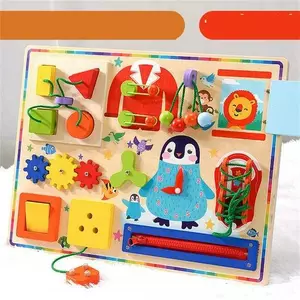 Бізіборд дерев’яний С 74529 (15) шестерні, геометричний сортер, спіннер, застібки, годинник, в коробці
