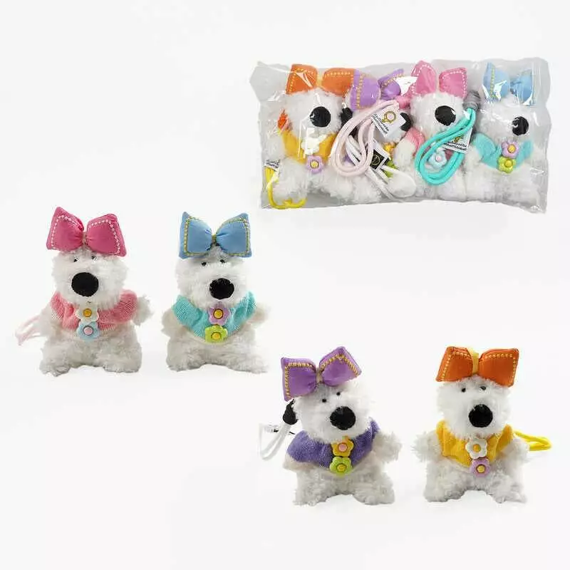 М`яка іграшка-брелок C 70738 (150) ЦІНА ЗА 4 ШТУКИ В УПАКОВЦІ, “Песик”, карабін, шнурок, в пакеті