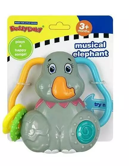 Музичне брязкальце 0889 (96) “Слоник”, на батарейках, підсвічування, мелодії, прорізувачі, звуки, на листі