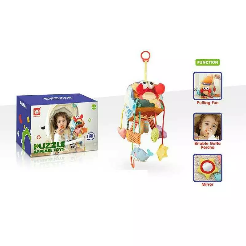 Брязкальце 20690 (36) 2 види, м`який куб, мотузки для перетягування, прорізувач, шелесткі елементи, пискавка, кільце-тримач, в коробці