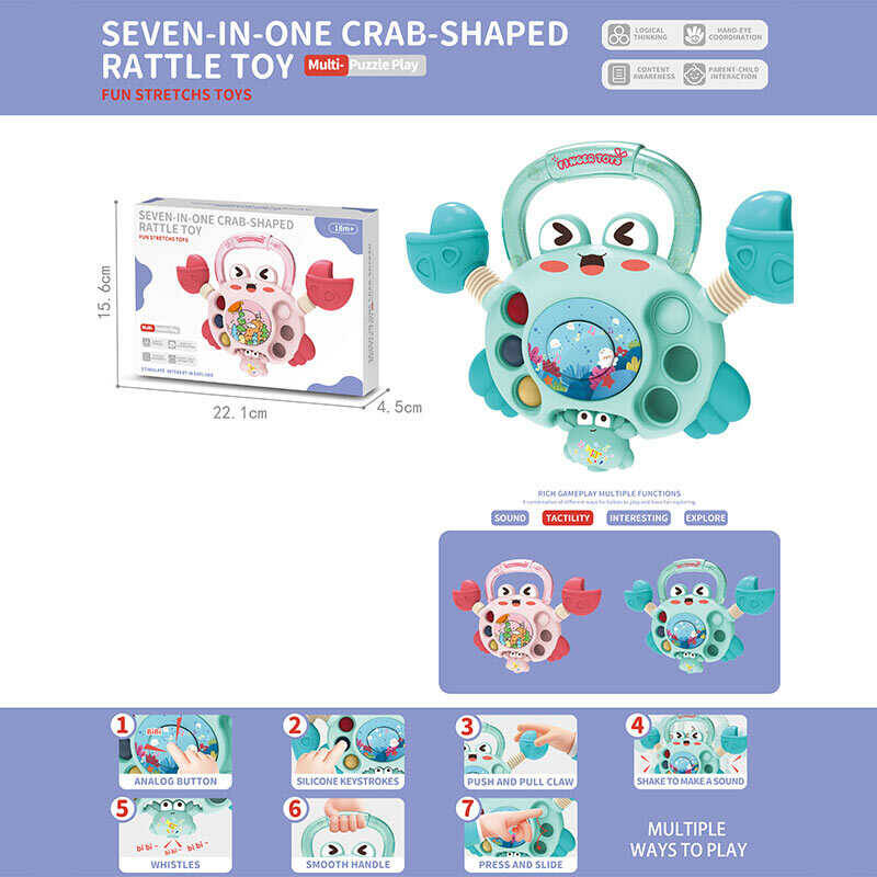 Брязкальце 2709 (72) 2 види, "Краб", гофра, пискавка, пальчикові ігри, поп-іт, в коробці