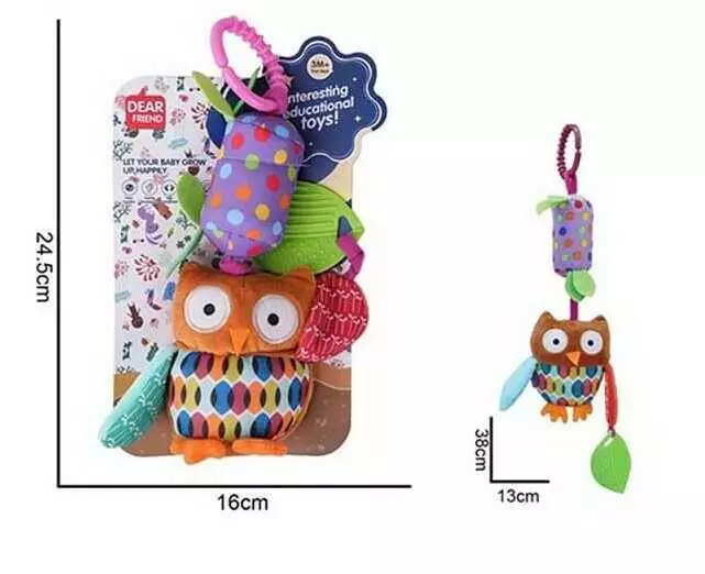 Брязкальце 688 M104 (120) "Сова", текстильне, мелодія вітру, прорізувач, кріплення для підвішування, в пакеті