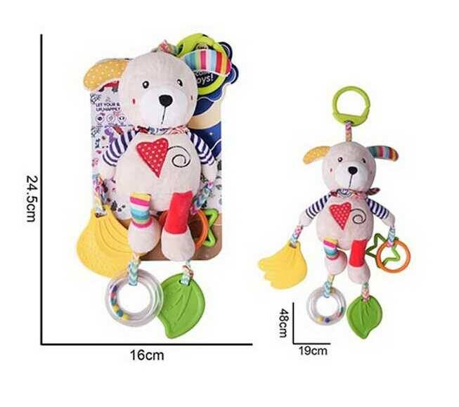 Брязкальце 688 M51 (72) "Песик", текстильне, шумливі кульки, підвіски, 2 прорізувачі, кільце для підвішування, в пакеті