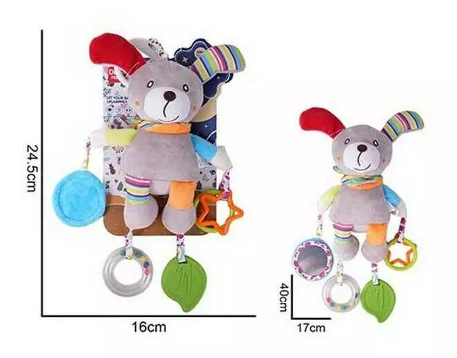 Брязкальце 688 M54 (72) текстильне, підвіска, гумовий прорізувач, шелесткі елементи, кільця, люстерко, кріплення для підвішування, в пакеті