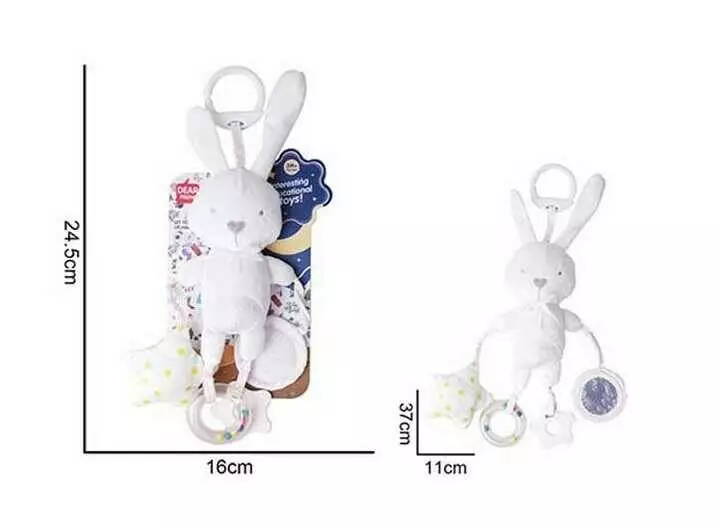 Брязкальце 688 M62 (120) "Зайченя", мелодія вітру, пискавка, гумовий прорізувач, підвіска з кульками, дзеркальце, на листі