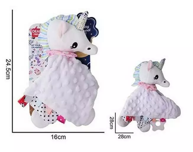 Брязкальце-комфортер 688 M64 (96) "Єдиноріжка", текстильне, гумовий прорізувач, шумливі вушка, петелька для підвішування, в пакеті