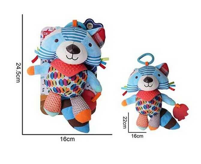 Брязкальце 688 M83 (96) "Єнот", текстильне, 2 прорізувачі, шумливі вушка, кільце для підвішування, в пакеті