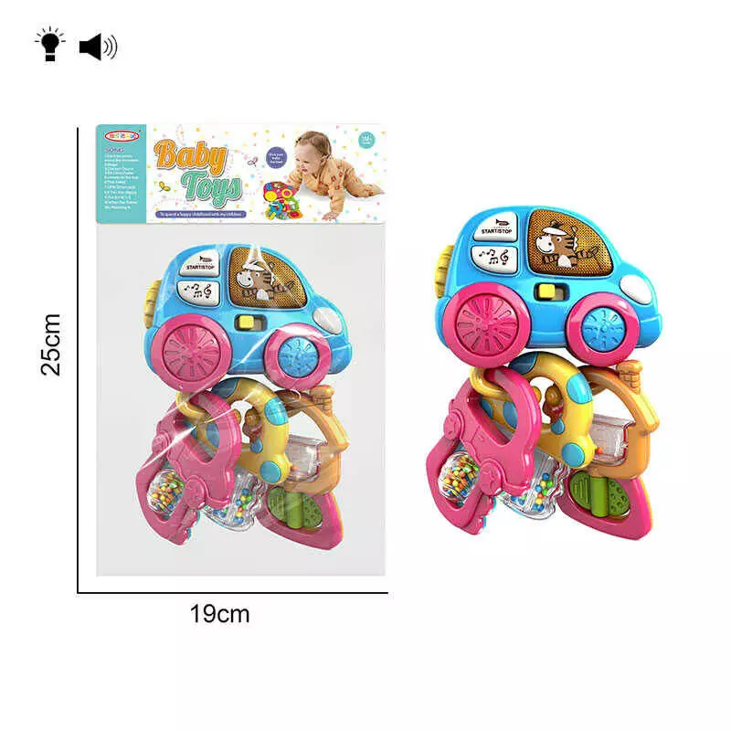 Брязкальце 8431 A2 (120/2) “Машинка“, підсвічування, веселі мелодії, звуки транспорту, 2 режими гучності, 3 брязкальця, пальчикові ігри, в пакеті
