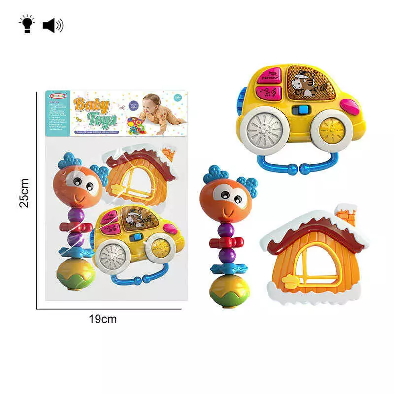 Брязкальце 8431 A4 (120/2) “Машинка“, підсвічування, веселі мелодії, звуки транспорту, 2 режими гучності, брязкальце розтягується, будиночок, в пакеті