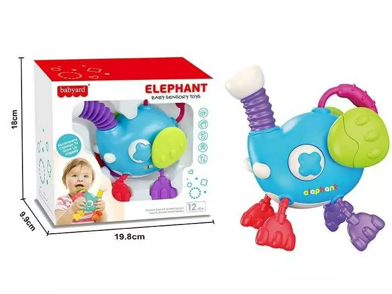 Брязкальце BY 201 (60) "Слоник", пискавки, прорізувачі, гумові шнурочки, в коробці
