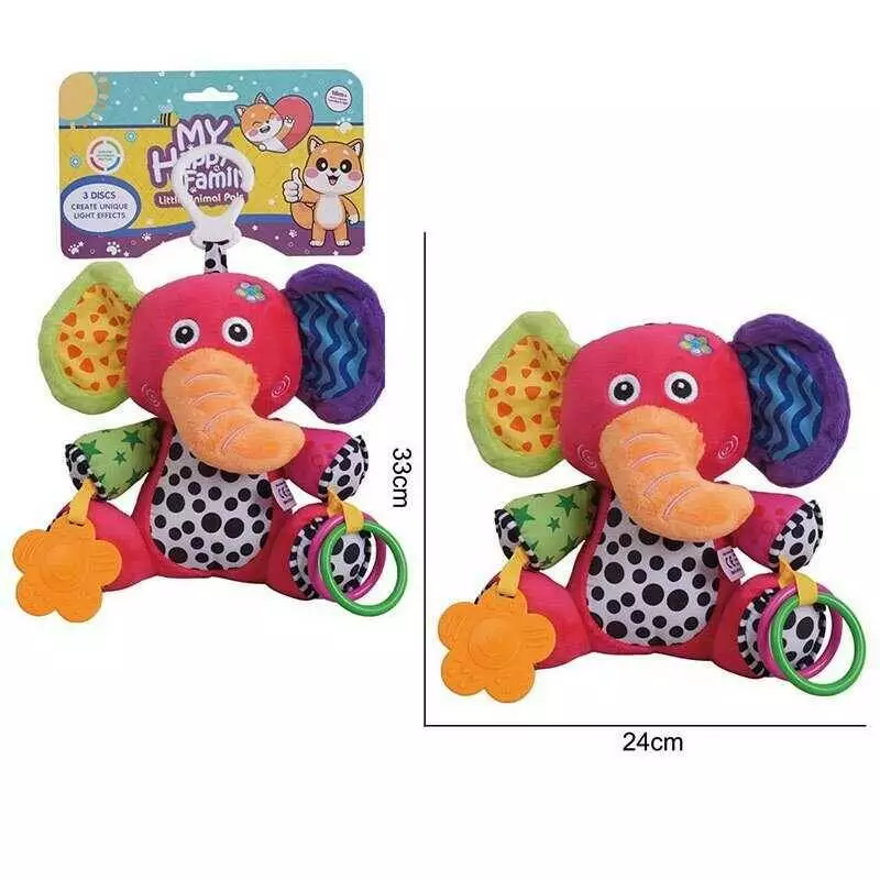 Брязкальце CH 6045-6 (60/2) “Слоник”, текстильне, мелодії, шелесткі елементи, прорізувач, кріплення для підвішування, в пакеті