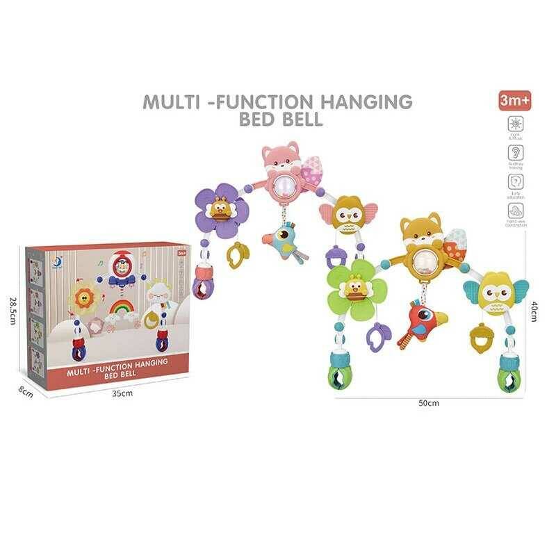 Брязкальце-дуга HL 2025-71 (16/2) 2 види, розмір 50х40 см, пискавка, прорізувач, пташки обертаються, кліпси-тримачі, в коробці