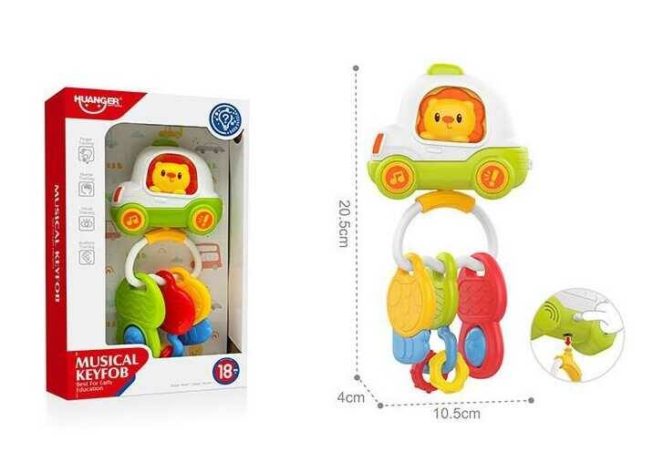 Брязкальце HE 0560 (48) "Машинка", підсвічування, мелодії, звуки транспорту, сімпл-дімпл, гумові прорізувачі, 3 підвісні брязкальця, в коробці