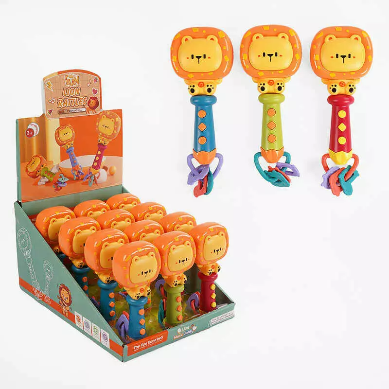 Брязкальце M 609 (12) ЦІНА ЗА 12 ШТУК В БЛОЦІ, “Лев”, мелодії, англійські слова, звуки тварин, музичні інструменти, прорізувач