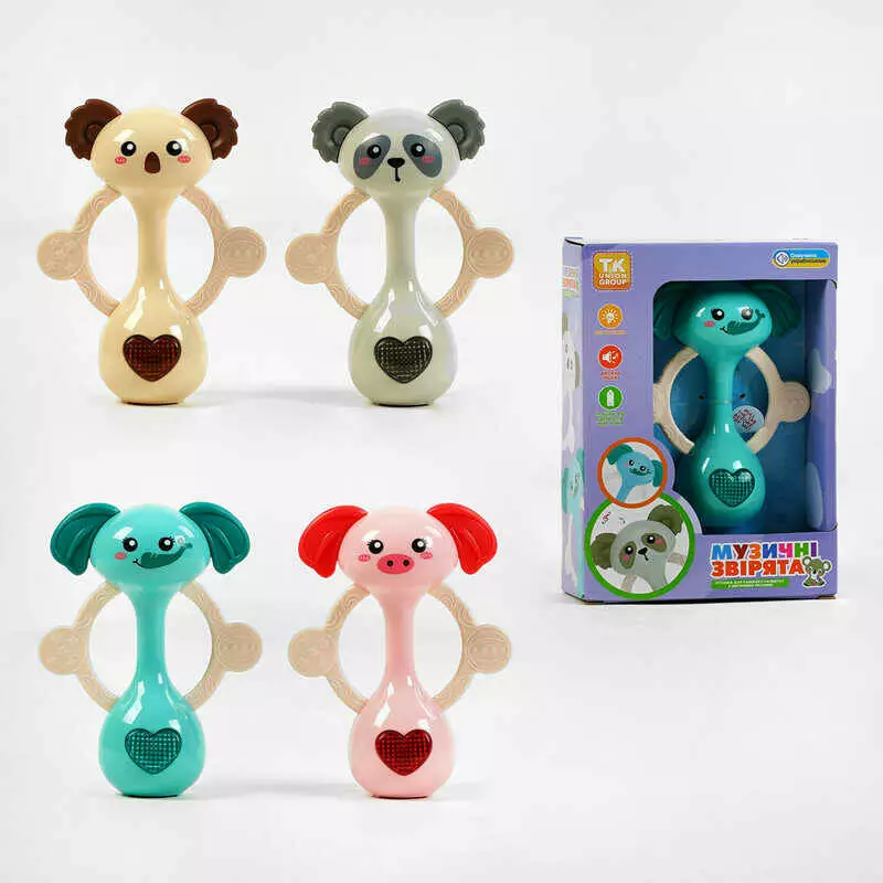 Брязкальце “Музичні звірята” TK - 51625 (96) "TK Group", 4 кольори, ОЗВУЧУВАННЯ УКРАЇНСЬКОЮ МОВОЮ, пісні, підсвічування, в коробці, МІКС