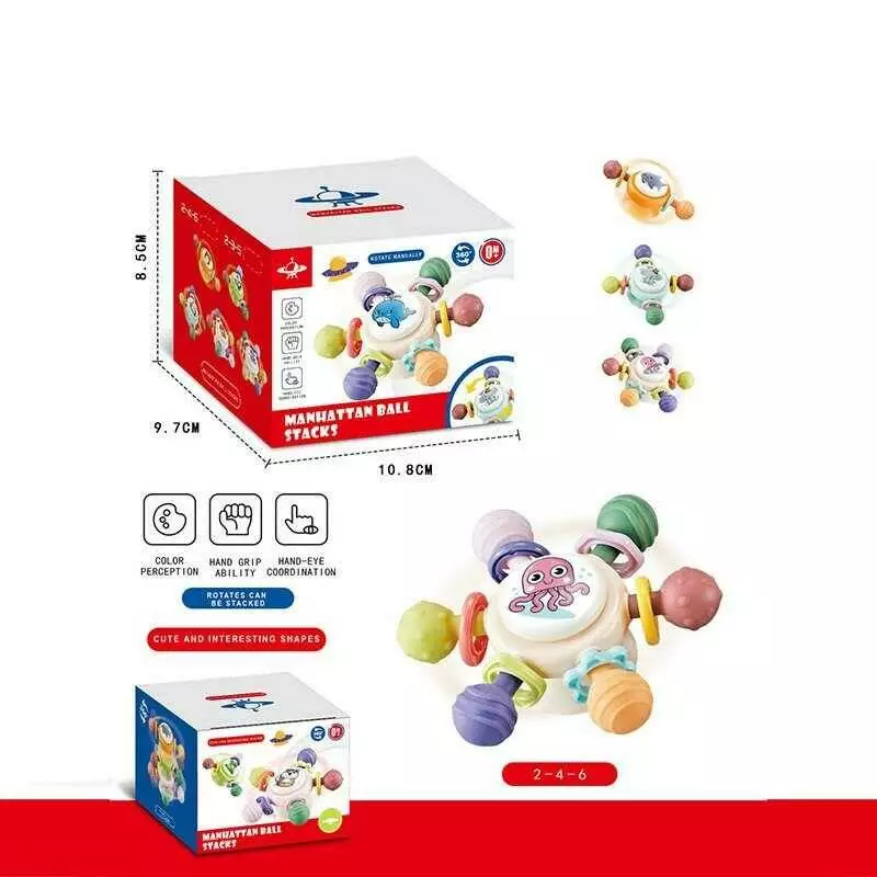 Брязкальце-спінер 8246 E (200/2) 3 брязкальця, гумові прорізувачі, присоски, в коробці