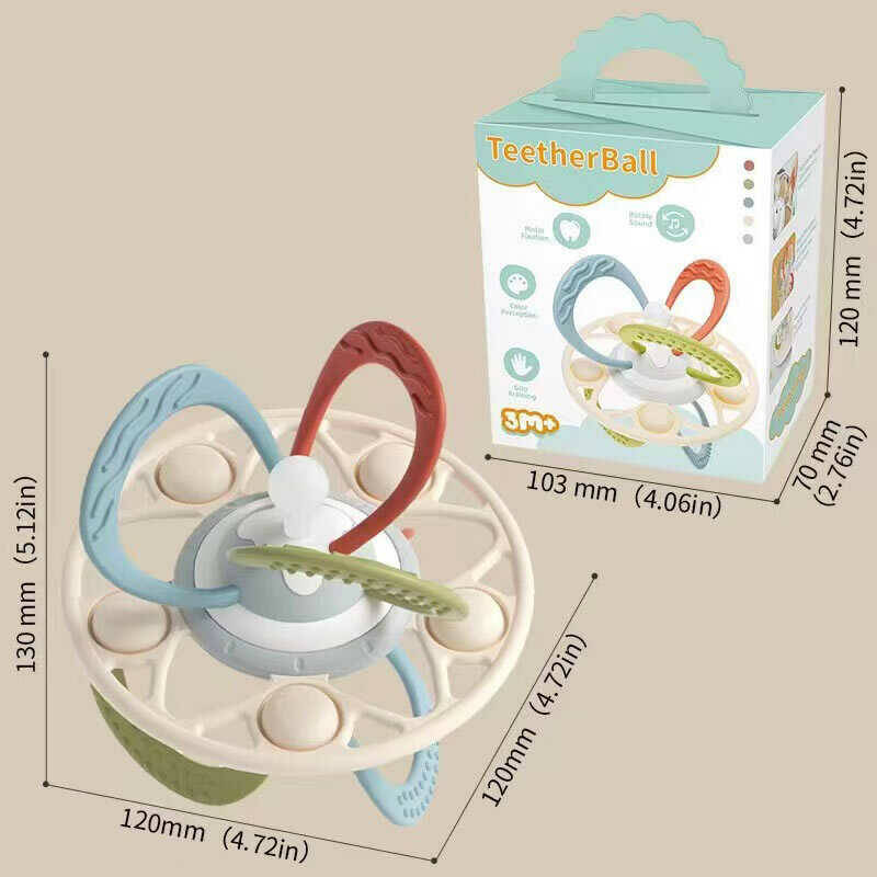 Брязкальце з прорізувачами AT-406 (140) розмір: 12х12х13 см, брязкаючий елемент, гумові прорізувачі з різними текстурами, тріскачка, поп-іт, в коробці