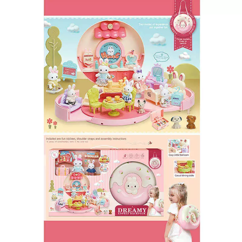 Будиночок 6695 (16) флоксові зайчики, меблі, посуд, аксесуари, в коробці